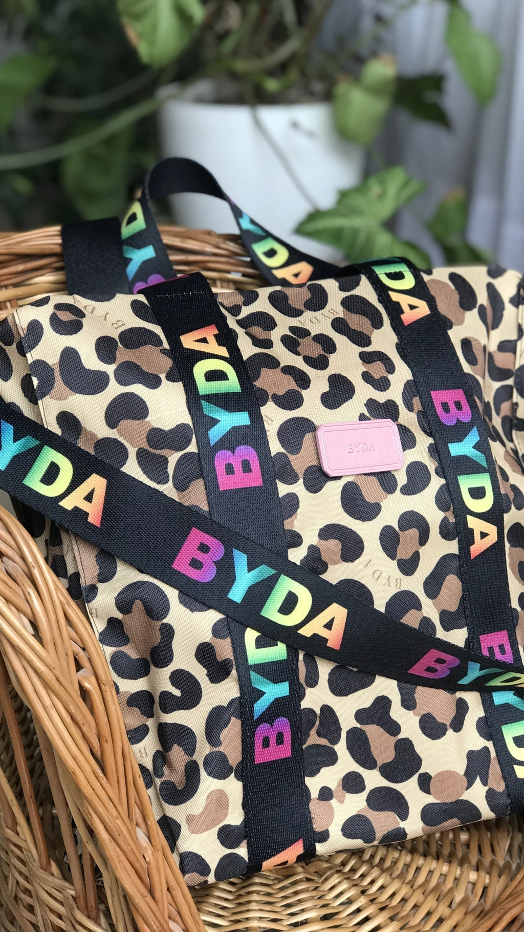 Bolso Cameron Print Beige, de material cordura sublimada con cierre y tiras ajustables. Interior forrado. Excelente para el uso diario. Tiras coloridas personalizadas y cierre multicolor. Detalle de la marca en chapa esmaltada rosa.